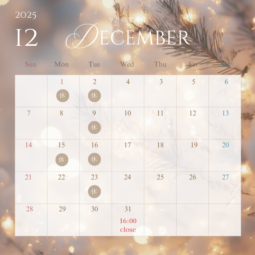 2025年、今年ラストのご予約まだまだお待ちしております。
