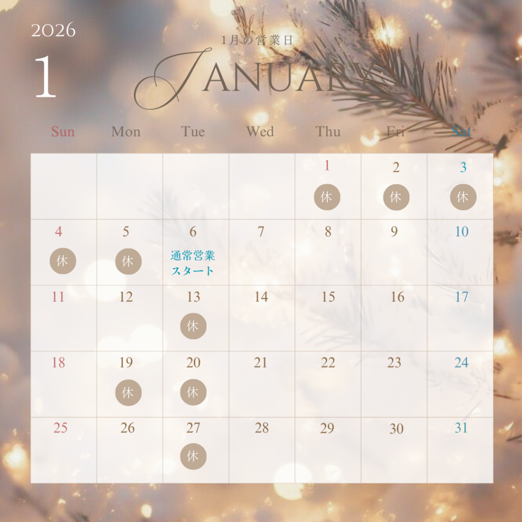 2026年1月1日(木・祝日)~1月5日(月)まで