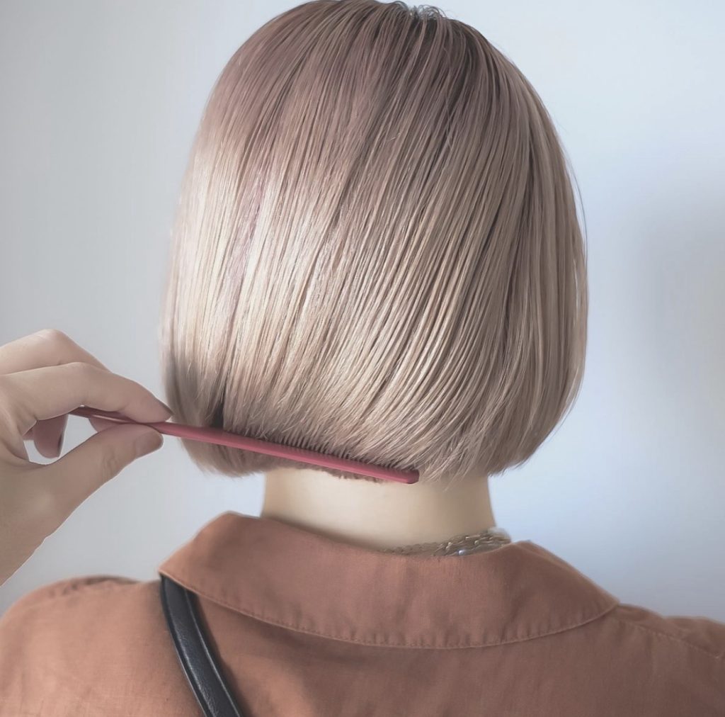 今回のお客様には、首元がきれいに見えるタイトなボブスタイルをご提案しました。